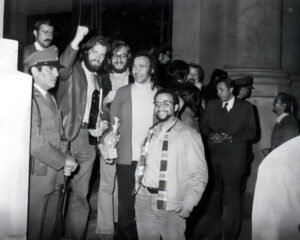 Louis Favreau (le poing en l’air, Pierre Lagrenade, Yves Vaillancourt et Karl Lévêque